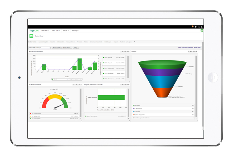 Mit Sage CRM wissen Sie zu jeder Zeit genau wie Ihre Kampagnen laufen oder wo Ihr Vertrieb steht. So können Sie besser planen und schnell reagieren.